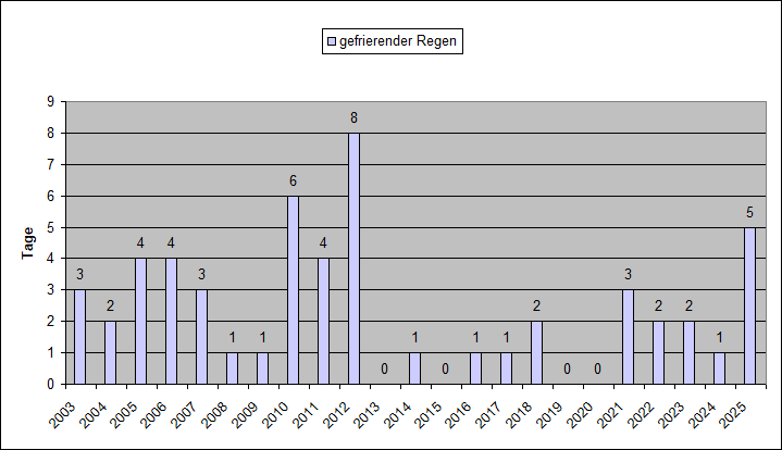 | gefrier. Regen | fallender Niederschlag gefriert an Gegenständen o. am Erdboden |