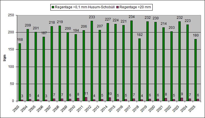 | Regentage >0,1mm | einschließlich abgesetzter Niederschläge ( Tau, Reif ) |