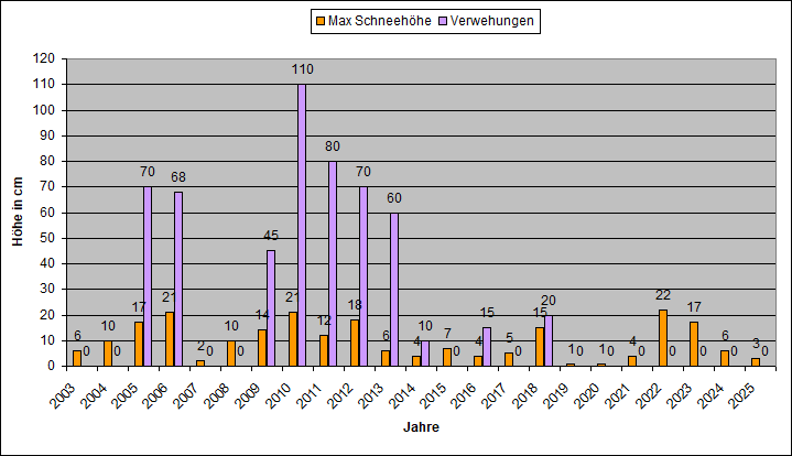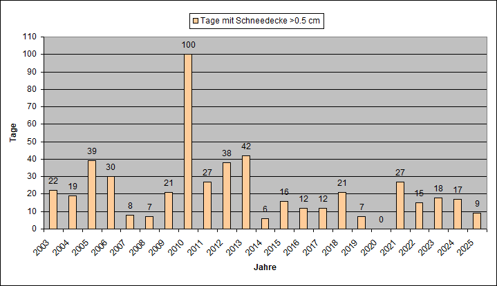 | Schneedecke | mindestens 50 % des Erdbodens ist mit Schnee/Hagel/Graupel bedeckt |