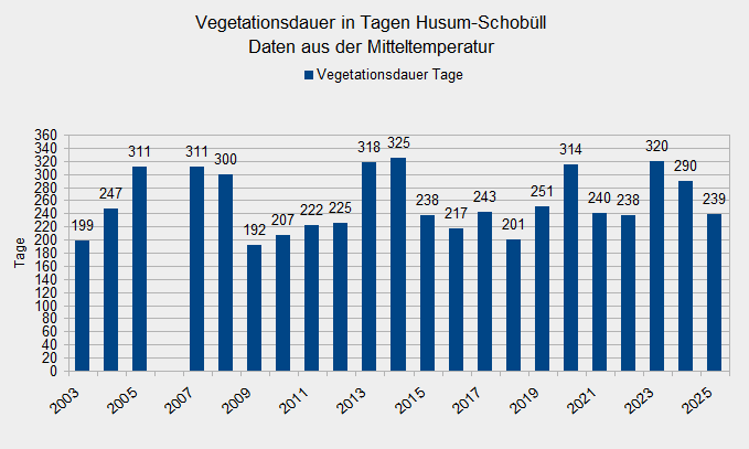 | Vegetationsdauer 2023 (aus Mitteltemperatur) | 239 Tage |